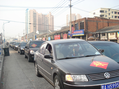 从家堡停车场到沪山祠堂要步行六个多公里。鸣锣开道,浩浩荡荡的大队伍在轰鸣的礼炮声中出发了,最后尾随的是近百辆均贴有“苏”字的轿车。沿途两旁的宗亲家门前迎接的鞭炮声此伏彼起,震耳欲聋。步行走了一个多小时,进入沪山地盘,那数百名主人早已夹道远迎。交接问候声、欢呼声、锣鼓声、鞭炮声响成一片,主客见面的场面犹如排山倒海之势。进入宗祠,那里里外外,前前后后,祠宇上上下下,顿时沸腾起来。大半来宾只好远离祠堂,在大路上拥挤、徘徊。