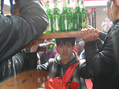 本族内最晚辈的老大苏宝概向来宾敬酒