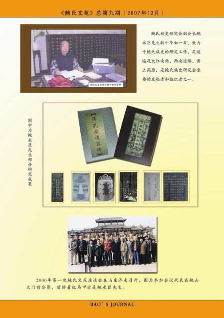 鲍氏文苑第九期封三 介绍鲍氏族史研究会副会长鲍永臣先生