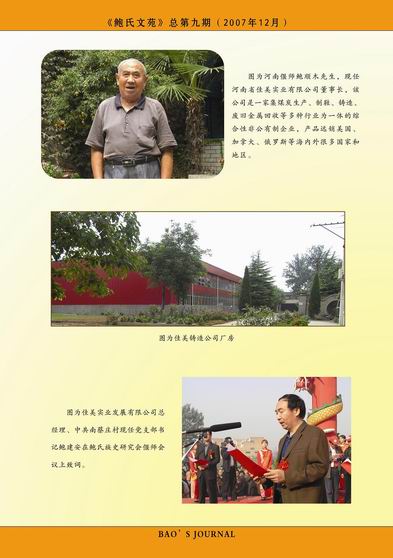 鲍氏文苑第九期封五 介绍偃师宗亲鲍顺木、鲍建安先生。