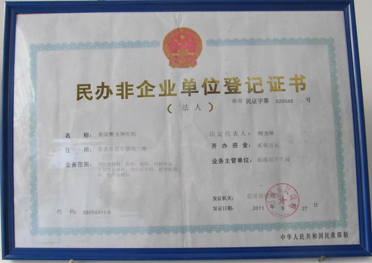 2006年创建非营利性综合民办医院(挂牌鲍尧坤医院),列入慈溪市医保、农保定点医院。医院不以盈利为目的。如有收益,用于医院的建设和发展。切实解决了当地群众看病贵、看病难的实际问题。群众称赞他是公益服务的慈善家,白求恩式的大夫。