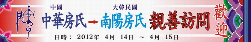 3.韩国方面非常高兴地接受了安徽房氏联谊会及世房总会(筹)关于6月16号在安徽举办安徽房氏第二次联谊会大会暨世房总会成立庆典、2013年可能在河南遂平举办第二次世界房氏宗亲联谊大会的邀请,具体人选、人数及相关事项,后续再作进一步磋商。
